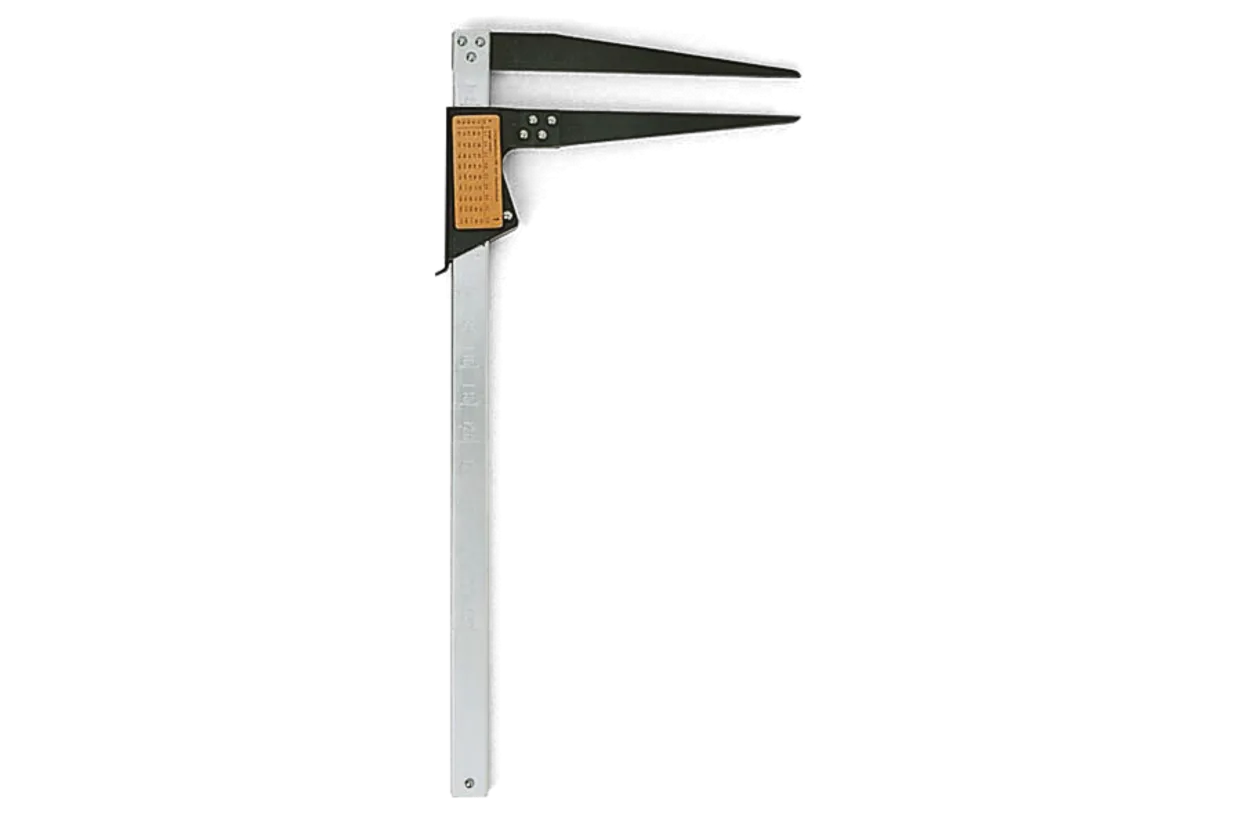 S měřicí tabulkou obsahu válce, centimetrové stupnice po obou stranách.