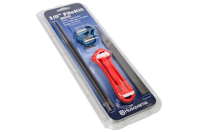Kompletní sada na ostření řetězů pro snadné udržování stále nabroušeného řetězu. Se správně nabroušeným řetězem bude vaše práce snadnější a bezpečnější. Sada obsahuje rukojeť pilníku, kombinované vodítko nebo vodítko pro ostření a měrku pro snížení omezovacího zubu, dva kulaté pilníky a jeden plochý pilník.